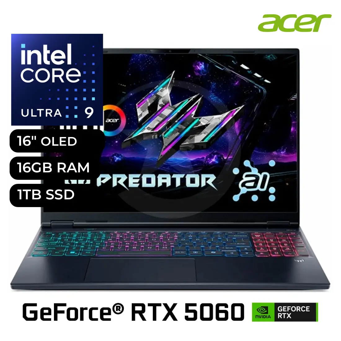 Laptop Acer Predator Helios 16 AI PHN16S-71-91AW Intel Core Ultra 9 275HX 16GB RAM 1TB SSD RTX 5060 8GB 16″ WQXGA OLED
